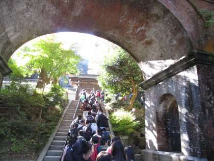 南禅寺の境内を抜けて琵琶湖疏水の水路閣の上へ上がって行きました。歴史ある水路閣には、外国人の観光客の方も多く見学していました。
