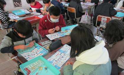 初めての児童が半分以上いる中、説明書を一生懸命読みながら作っていました。