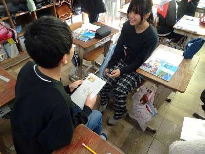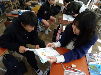 教科書に載っている風刺画が何を表しているのかについて話し合い、日清戦争後の日本と外国との関係について学習を進めています。