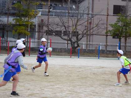 チームで協力して、トライを決めたりディフェンスをしたりして、がんばっています!