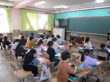 1年生は昨日の入学式を終え、今日は初めて教室での学習がありました。3クラスとも自分の席に座り、先生のお話をしっかりと聞いていました。学校の探検に行くクラス、お絵描きをするクラス、学校生活の過ごし方を学ぶクラスなど、いろいろな活動をしていました。