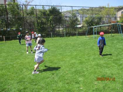 今日は快晴の中、帰りの準備が速く終わったので芝生広場で遊びました。