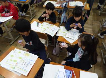 社会科「わたしたちのまち」の学習で、方位磁針を使ってみました!
