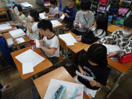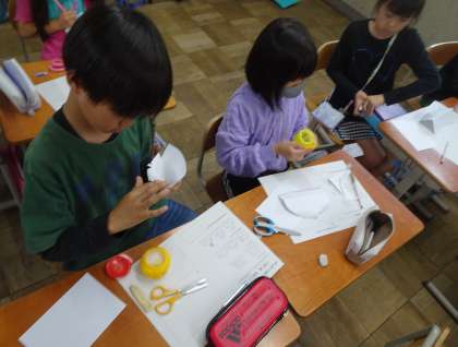 紙の立たせ方や立ち上がった紙に描く絵などについて、想像を膨らませていました!