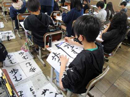書写の学習では、文字の大きさや配列に気を付けて「歩む」という2文字に挑戦しました。最高学年としてこれからどのような1年を歩むのか。そんな思いもこめながら集中して作品を仕上げました。