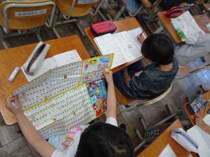国語科「漢字の音と訓」の学習では、いろいろな漢字の音読みと訓読みについて学習しました。