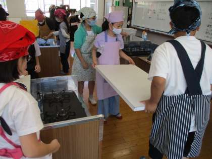 おいしいお茶をいれるために、家庭科室の用具やコンロの準備を手際よく行っていました。