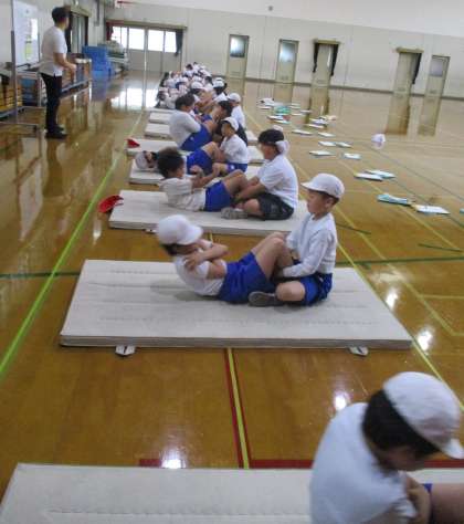 今日の体力テストは、長座体前屈・握力・上体おこしを行いました。昨日の体力テストよりも気合いが入っている子が多く、ベストを出そうと一生懸命に頑張っていました。