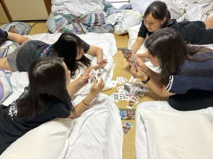 宿泊する慶野松原荘に到着し、それぞれ部屋での時間を楽しんでいます。みんな元気です!