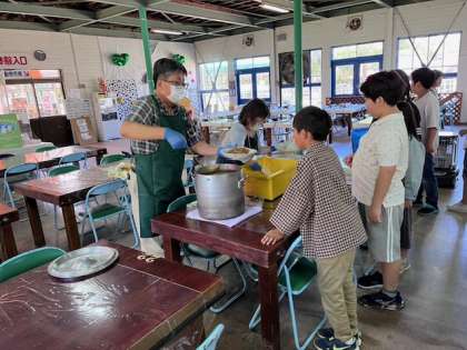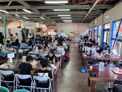 修学旅行最後の食事は、ミルクカレーです!大盛り?少なめ?超大盛り?自分が食べられる量に合わせて美味しくいただきました!お腹いっぱいになったところで、最後の目的地であるハイウェイオアシス目指して出発です!