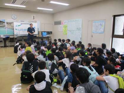 まず、はじめに新山科浄水場でどのようにして水道水が作られているかを教えていただきました。