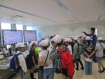 京都市民のために安全・安心な水道水を作るために、1日24時間、1年365日休むことなく、浄水場すべての施設や機械の状況を監視し運転制御しているという話を聞いて子どもたちも驚いていました。