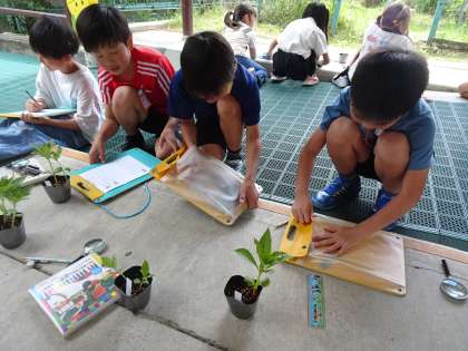 今日の理科の学習は、大きく育ったホウセンカの観察をしました!