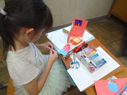遊園地やお店屋さんなど、いろいろな場面を思い浮かべ、登場人物や舞台を作り上げています!