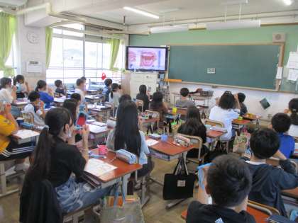 自分の歯を観察したあとに、正しい歯磨きの仕方やフロスを使い方を学習しました。この学習を通して歯を大切にしてほしいと思います。