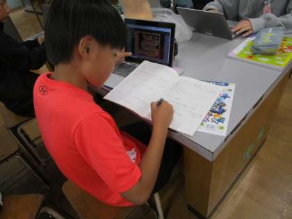 理科の学習では、体の中に取り入れた食べ物をどのように消化しているのかを模型やインターネットを活用して調べました。自分の体の中のことですが、調べてみると新たな気付きがあったようです。