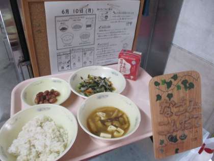 きょうはなごみこんだてです。なごみ献立の日でも6・7・9月は暑い日が多いので牛乳がつきます。
