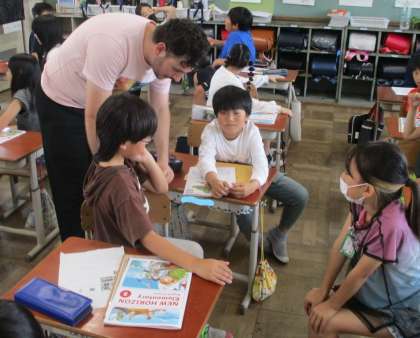 今日はALTのブライス先生が来てくださいました。友達の誕生日や欲しいものについて聞き取ったり伝えあったりしました。