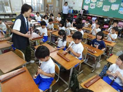 リコーダーを吹く時の正しい姿勢や持ち方、タンギングについてなどを学びました!