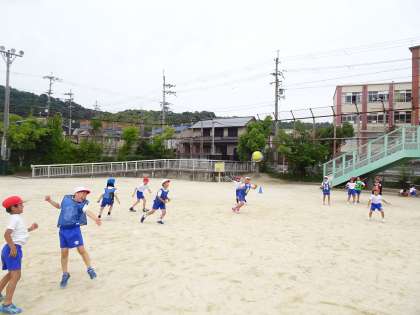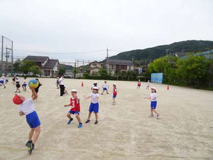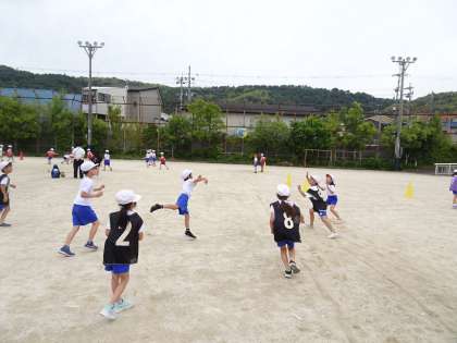 体育の時間に、学年みんなでエンドボールを行いました!