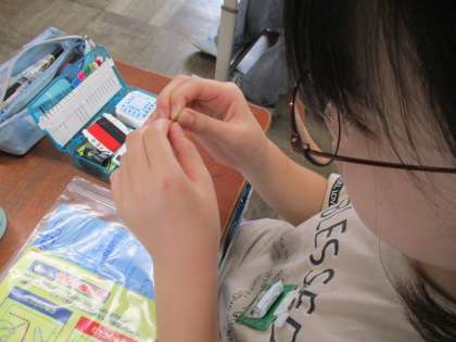 今日の家庭科では、針に糸を通したり、玉結びの練習を行ったりしました。子どもたちはとても器用で、説明を何度かしただけで、一人で玉結びができるようになっていました。次回は玉止めに挑戦します!!