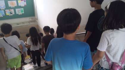 たてわりグループで協力して、校内を回って問題を解いてキーワードを集めました。