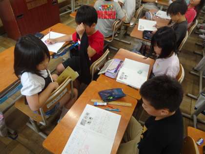 予想を子どもたち同士で出し合い、意見を交流しました。