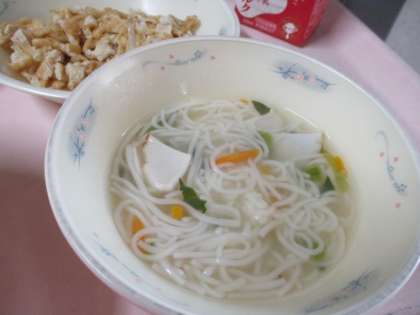 たなばた献立です。たなばたそうめんのそうめんは天の川に見立てています。