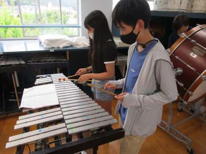 音楽科では、ラヴァーズ・コンチェルトの合奏に挑戦しています。グループで考えためあてに向かって、役割分担をして練習に励んでいます。