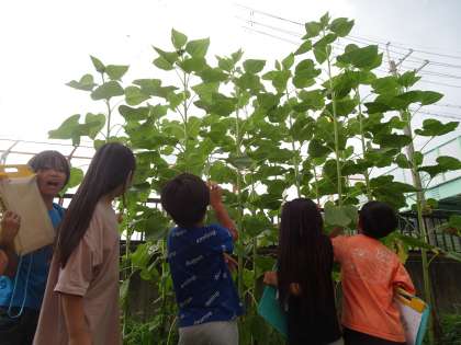 ひまわりは、子どもたちの背を大きくこし、とても成長していました!