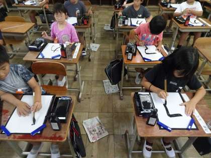 子どもたちが集中した雰囲気をつくりあげ、とてもていねいに字を書いたり、きれいな作品にしようと何度もくり返し練習したりしてがんばっていました!また、片付けもとてもスムーズにできるようになり、床が汚れているところを率先して掃除してくれる子もいました!