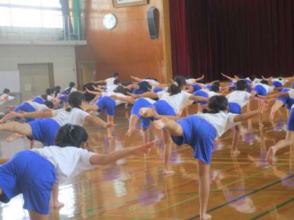 今日はこれまでの復習をした後に新たな技に挑戦しました!一人一人の息を心を力を全て合わせないとできません。何度もねばり強く練習しました。技が成功すると、自然と拍手が起こるあたたかな雰囲気が6年生のよいところです!