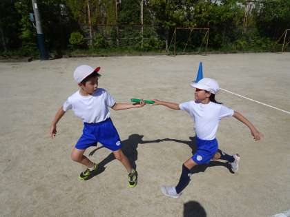 今日の体育の時間に、百々リンピックで行うリレーの練習をしました。自分たちで順番を考え、いろいろな順番でバトンパスの練習に取り組む姿が見られました!