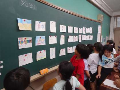 1組では、一人一人オリジナルキャラクターを描いてみました!クラスで一つ、どのキャラクターで立候補するか、投票で決めました!