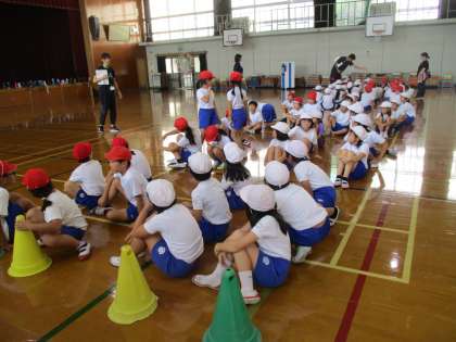 今週より、体育の時間は学年そろって、百々リンピックに向けて練習を始めました!