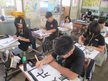百々リンピックの練習で汗を流している日々が続いている中、今日は少し一休みをして書写の学習を行いました。姿勢を正し、心を落ち着け、筆順に気をつけながら「成長」を書きました。