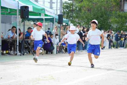 50m走では、ゴールを目指して一生懸命走り切ることができました。「練習よりも早く走れたよ!」と話す子もいました。2年生の百々リンピック最初の競技なので、緊張感のある中でしたが、子どもたちが楽しんで走っている姿が印象的でした。
