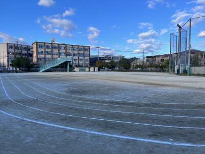この写真は、本日の百々リンピックをすべて終えた後の運動場の様子です。この写真を撮影する1時間前まで様々なドラマがあった場所とは思えないくらい、静まり返った運動場です。