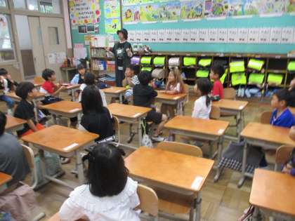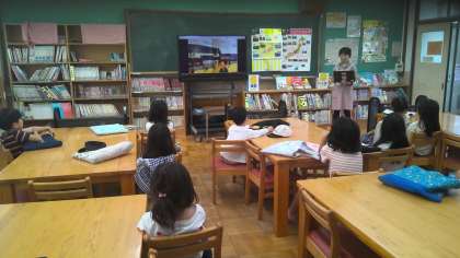 百々小学校では毎月1回、ボランティアの方に来校いただき、絵本の読み聞かせをしていただいています。