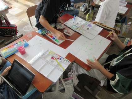 図工の鑑賞の学習で水や色水からきれいなところを見つけて写真に撮る活動をしました。