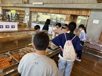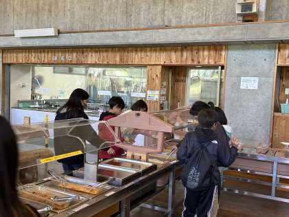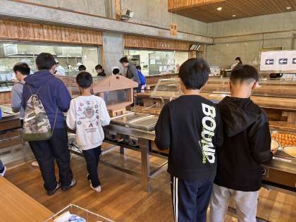 待ちに待った昼食です。バイキング形式とラーメンにみんなおおはしゃぎです。