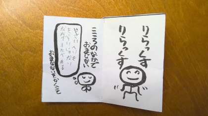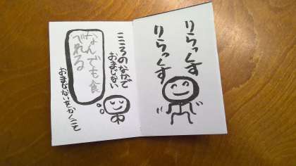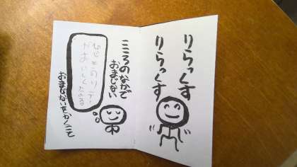 一人一人、カードにおまじないを書き、ランチルームで給食を食べました。