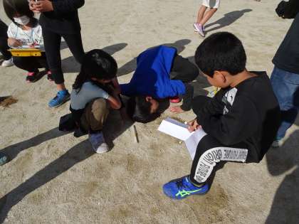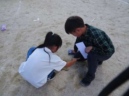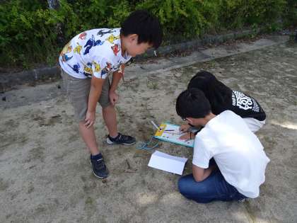 朝と昼過ぎに運動場に出て、温度計を使って測りました。