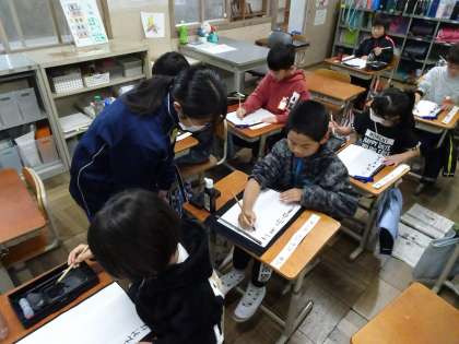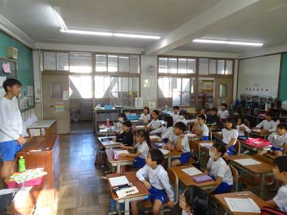 山科中学校の人がチャレンジ体験に来られました!1組では、昨日と今日、一日お世話になりました!短い時間でしたが、子どもたちはお話したり、遊びに誘ったり、勉強を教えてもらったり、楽しい時間を過ごしていたように思います。