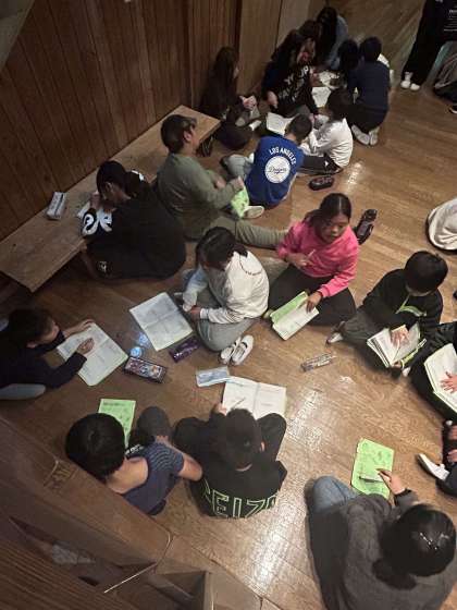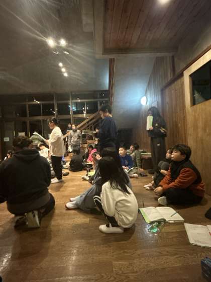 2日目振り返りの様子です。登山にキャンプファイヤーとたくさん挑戦した2日目。