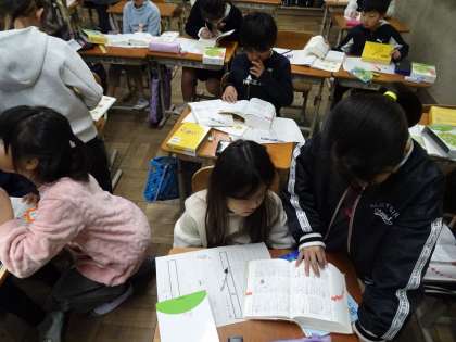 国語科の学習で国語辞典を使い、ことわざの意味を調べました!聞いたことがないことわざや、聞いたことはあるけど意味を知らないという人がほとんどだったので、「そういう意味なんや!」と驚いていました。