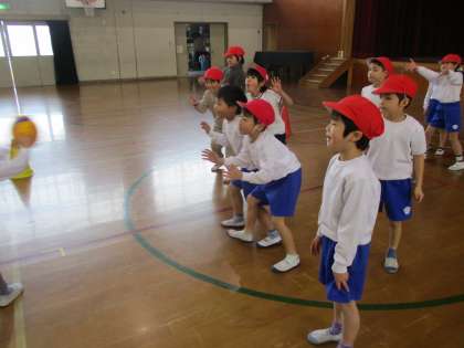 体育科では、「まねっこあそび・ボールあそび」を行いました。