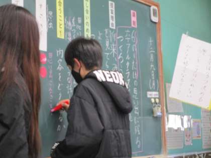 今日はチーム会議で卒業文集のテーマについて話合いをしました。「みんなが納得できるように」というめあてのもと、提案理由に沿って多くの意見を出すことができました。「このテーマならみんなが思い出せる文集になると思う」「出来上がりが早く見たい。今から楽しみです」「みんなで決めたから作るのが楽しみです」などの振り返りも見られました。