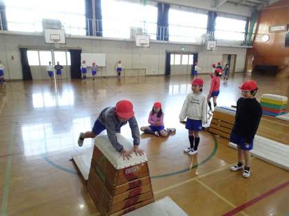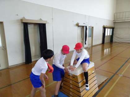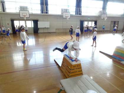 体育科では、跳び箱運動に取り組んでいます。
