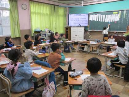 司会・黒板書記・ノート係も子どもたちで行い、子どもたちの力で会議を進めています。